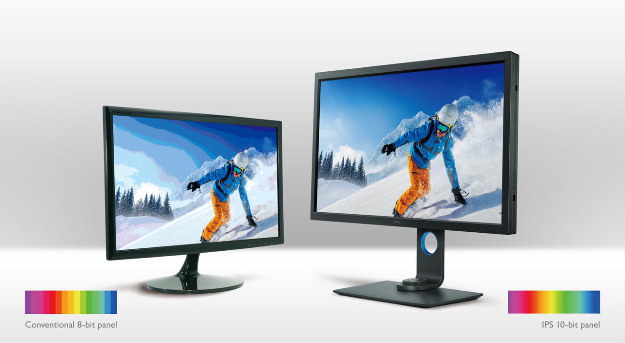 高端的专业显示器基本都需要搭载10-bit色深的IPS面板,这类面板可以呈现出超 10 亿种色彩,让色彩更具真实感,更还原。