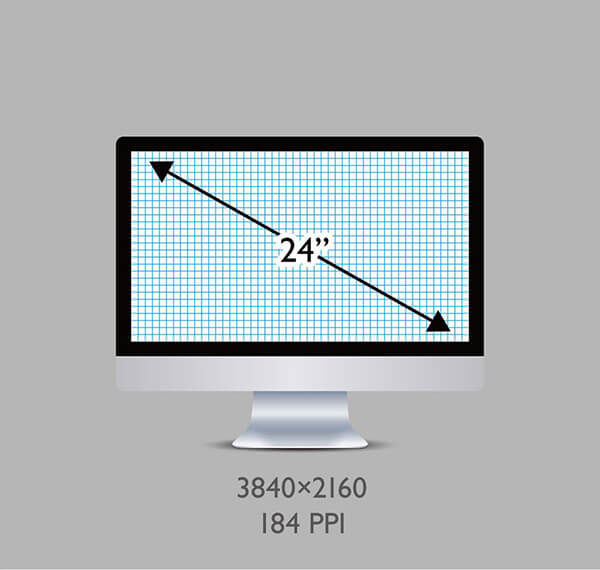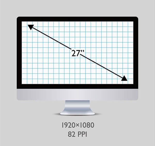 PPI =(水平分辨率 ² + 垂直分辨率 ²)的平方根 ÷ 显示器尺寸(英寸)